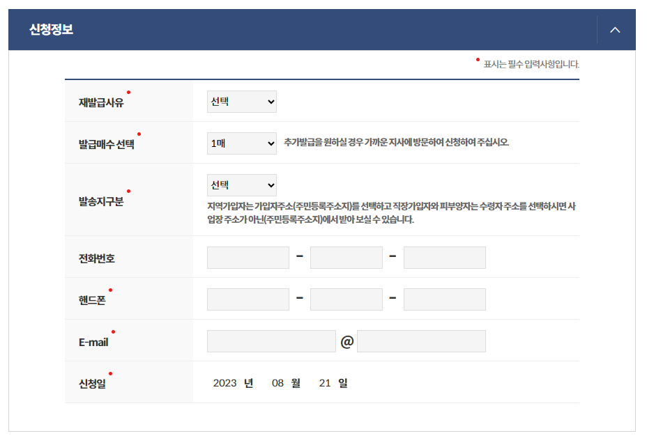 - 위의 절차를 마친 뒤, 온라인 신청을 완료합니다. 해당 과정을 통해 신속하고 간편하게 건강보험증 재발급 신청이 완료됩니다.