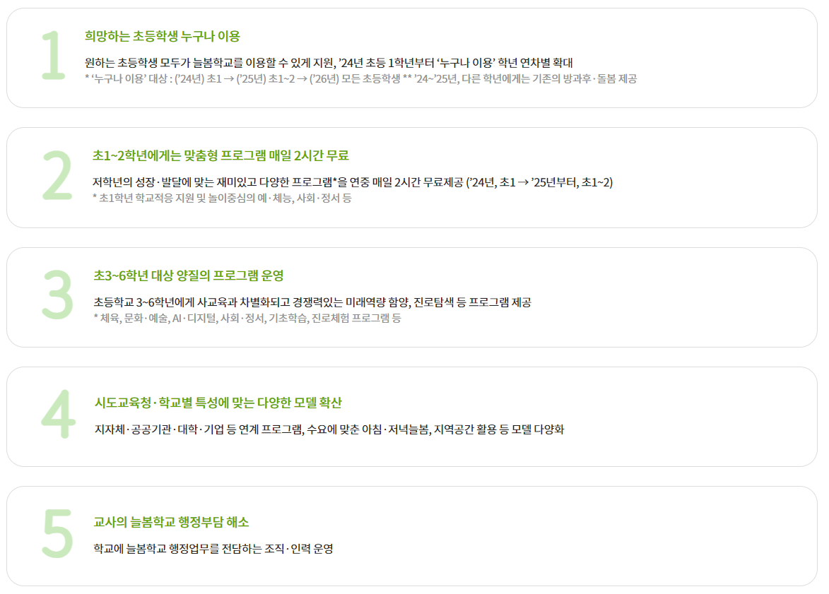 2024년에는 초1 학생부터, 2025년에는 초1~2학년, 2026년에는 모든 초등학생이 이 프로그램을 이용할 수 있게 됩니다.