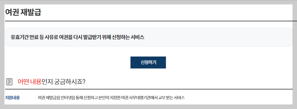 - 18세 이상 성인을 대상으로 한 온라인 여권 재발급 서비스