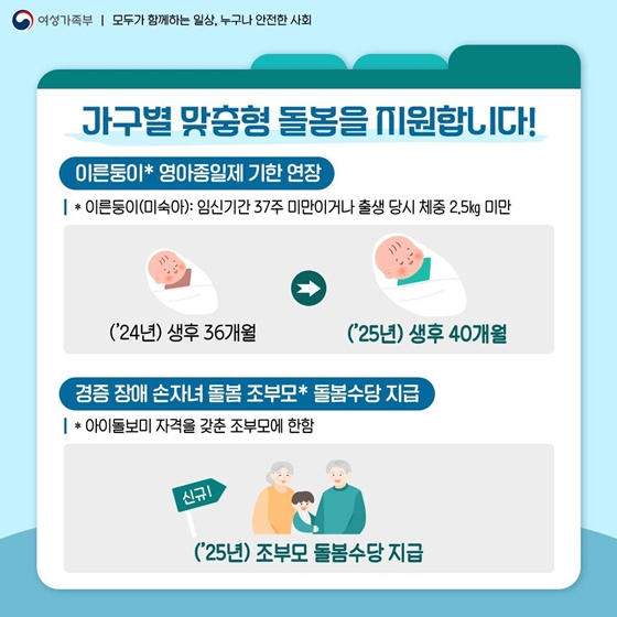 - 경증 장애 손자녀 돌봄 조부모 돌봄수당 신규 도입