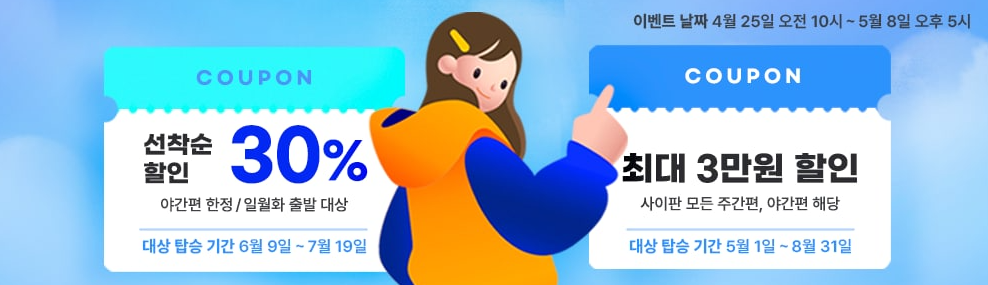 - 사이판 선착순 30% 할인 쿠폰 혜택:
